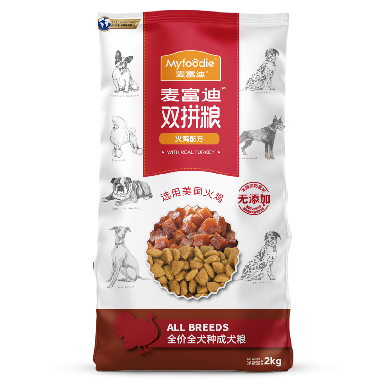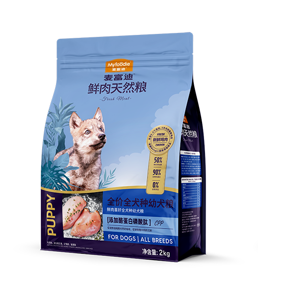 麦富迪全价鲜肉天然粮,添加50%鲜鸡肉配方,鲜肉全部来自于认证农场, 0-4℃保存5天内的新鲜鸡肉。 0谷物&麸质。